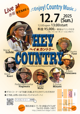 7日(日)、赤坂「ステージ1」で Hey Country のライブでした。