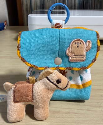 馬埴輪は横 7cmくらい、ポーチは上辺が 9cmくらい。何も入らん。可愛いから良いか。(笑)